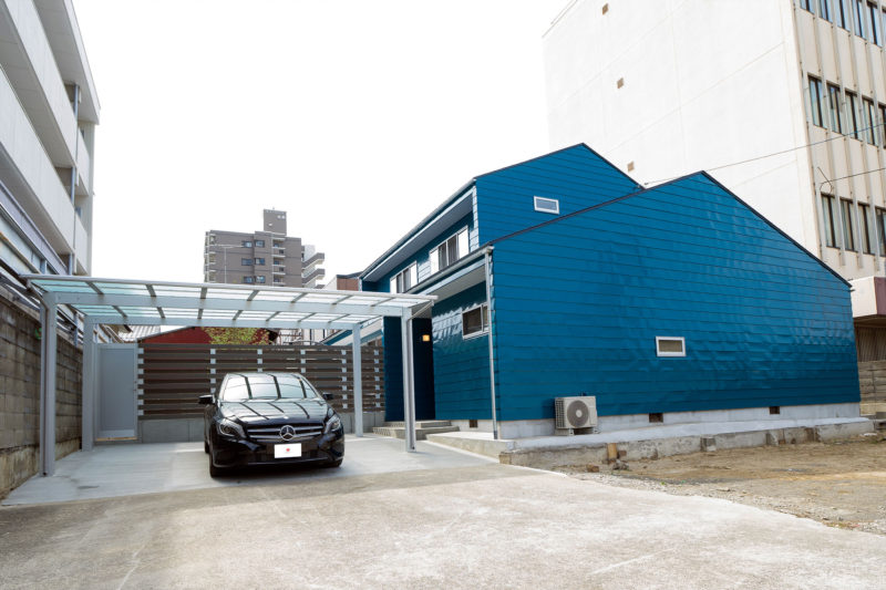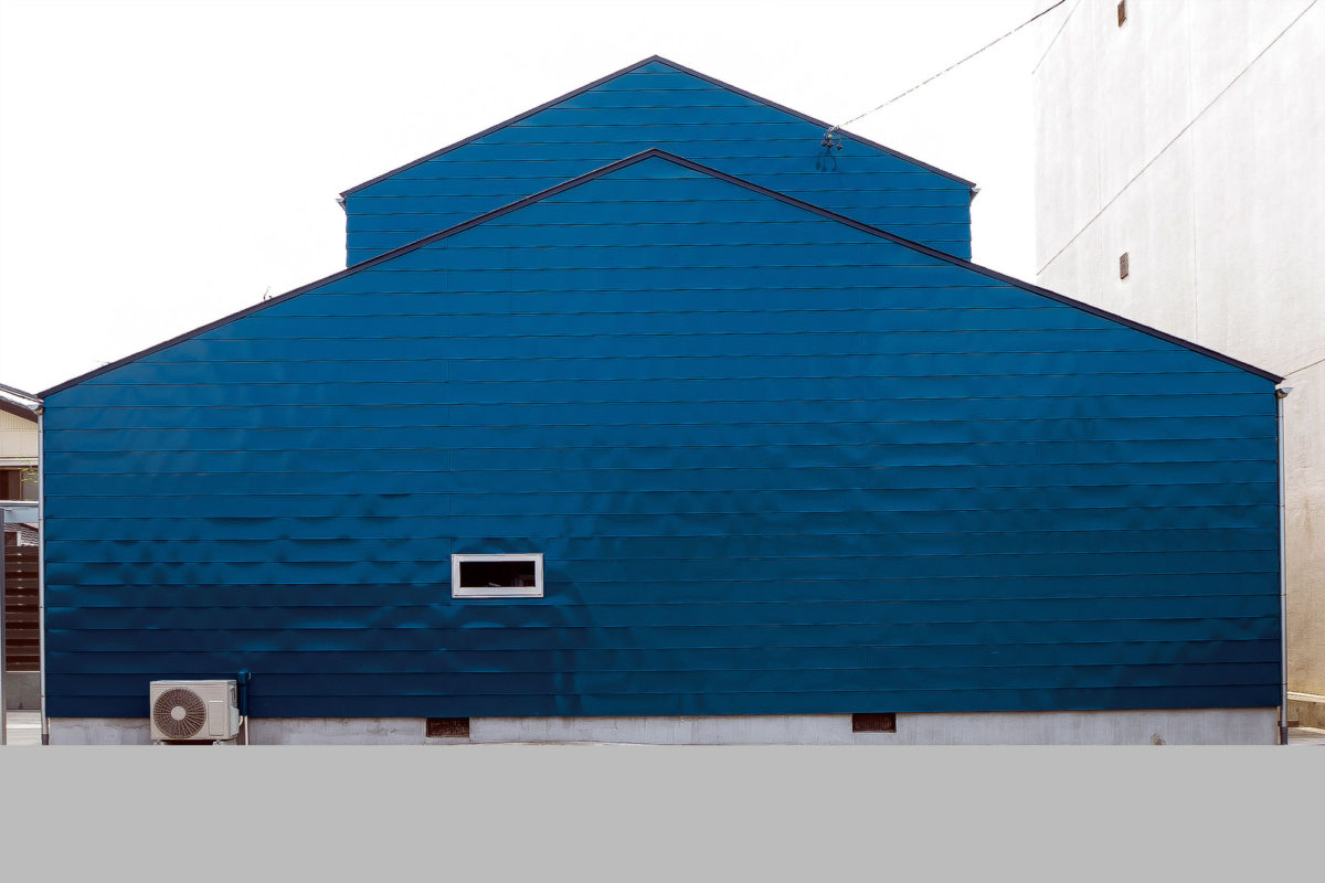 Iさまのリクエストは、仲の良い家族が楽しく過ごせること、それから外観にインパクトと遊び心のある家。まず耐震性や断熱性などの基本性能を確保しながら、妻側の軒を撤去し、新たに袖壁を設けて新しいフォルムを整えました。さらに、外壁・屋根には鮮やかなブルーのガルバリウム鋼板で仕上げて和風の印象を一新。典型的な和風住宅が、印象的なカラーのモダンな美しい外観に大変身しました。