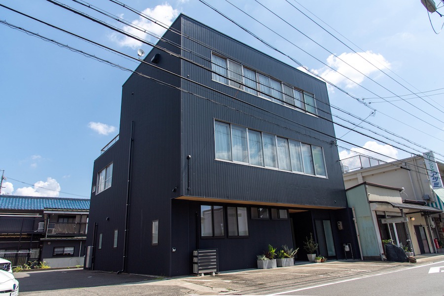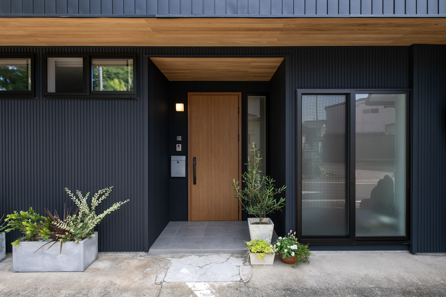 外観は黒系のカラーがご希望だったため、黒に近いメタリックグレーをセレクト。リノベ前より重量感の増した建物に変化しました。