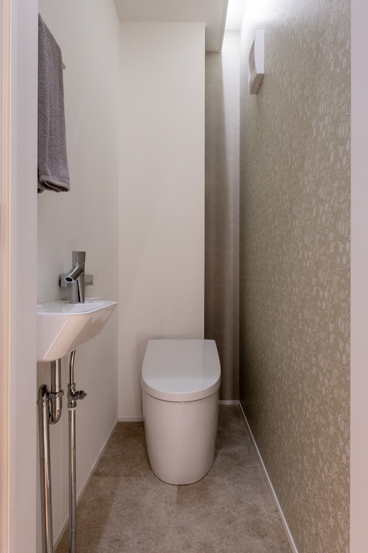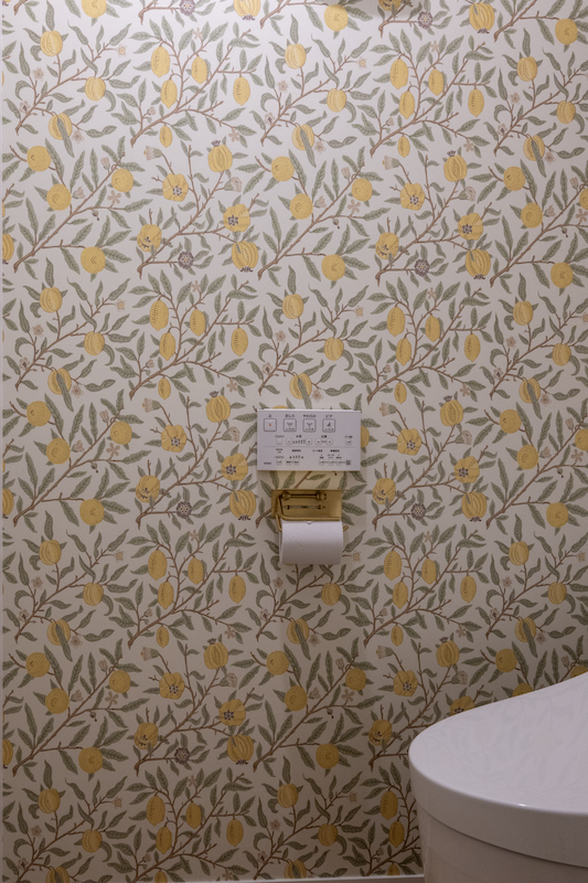 2箇所あるトイレのアクセントクロスも「ウィリアム・モリス」を採用。階層別のコンセプトに合わせモリス柄も別々のものに。